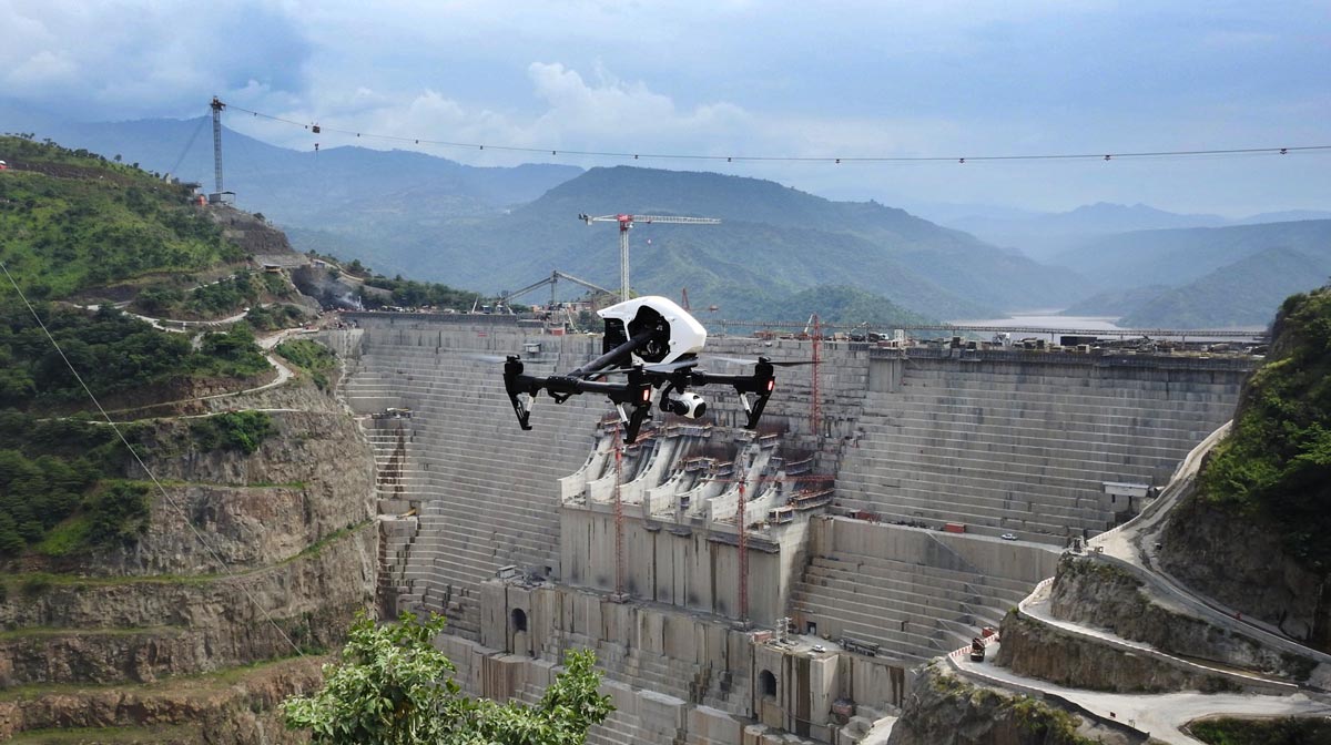 Since its beginnings SP has been appointed to perform unusual tasks calling for non-conventional and innovative solutions The engineers Giorgio Pietrangeli and Paolo Alfredo Pallavicini have always personally followed the progress of their ambitious projects, as may be seen in the photograph which shows one of them during the testing of the spillway of the Legadadi Dam, where five different types of dam (including concrete buttress and rockfill) were employed to adapt the structure to the foundations. Construction of the Bumbuna plant was a fundamental milestone for the development of Sierra Leone. By adopting multi-functional hydraulic tunnels, SP managed to half the construction costs without affecting the level of energy produced. SP also had the singular task of designing the Sierra Leone banknote. Studio Pietrangeli has always tried to carry out topographical surveys using our own personnel and instrumentation, in order to maintain direct control over the acquired data and relevant elaboration. Also in this sector, SP has always been innovative. As early as in 1997, for the Dankel project, we applied a topographic technique today widely used: the aerial survey using Laser, today better known as LiDAR. Nowadays, SP has successfully pioneered the use of drones in the field of dam engineering in a wide range of contexts and environments, accumulating over 200 hours of flight in 10 countries. Our ingenious hydraulic structures have contributed to improve the overall performance and reliability of several projects. The Gibe III spillway’s original design has been presented at international specialist conferences. More recently, special “fast-track” projects have become a new challenge for SP. For instance, starting from satellite photos and Shuttle DTM, the conceptual design of Gibe III was completed in less than 50 days. One of the various special “fast-track” techniques comprises surface surveying with drones or from helicopter. The founder and director of the firm, Giorgio Pietrangeli, always reminds young engineers that ” l’ingegnere è una persona che si ingegna “ (an engineer is a person of ingenuity), meaning that our work demands the full use of our technical qualifications, culture and creativity to find solutions to the most difficult problems. Innovative solutions in rock mechanics field (see Chapter 6, Rio Grande, in “Rock Engineering, Course Notes” by Evert Hoek, 2004) or in bituminous (six dams completed) and concrete facings (saddle dam of GERdp project), together with other engineering innovations, characterize many of the firm’s projects.