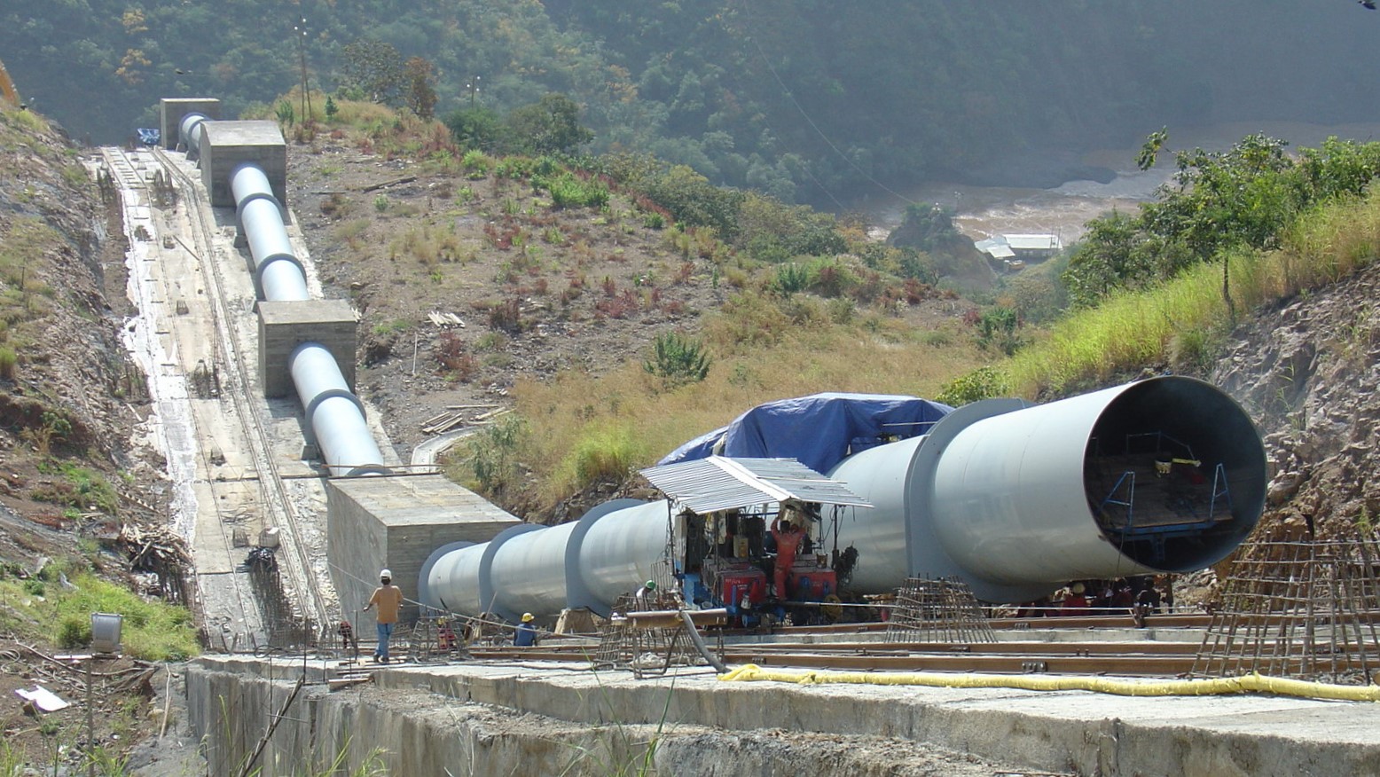 The inlet area is located along the Gilgel Gibe river. A concrete gravity dam with an intake tower allows the diversion of a flow of about 105 m3/s inside the power tunnel, which delivers the flows through the penstocks to the powerhouse in the Omo river valley, the outlet area.