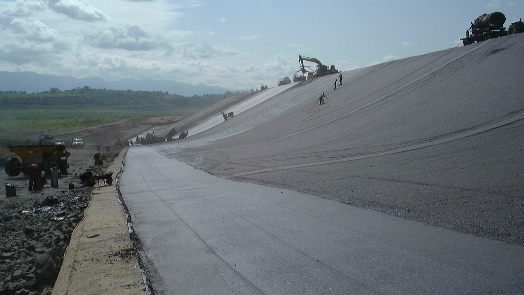 • Rockfill Dam with bituminous upstream facing ( H = 40 m, L = 1’600 m, Embankment volume V = 2.5 Mm³, bituminous face A = 105’000 m² )