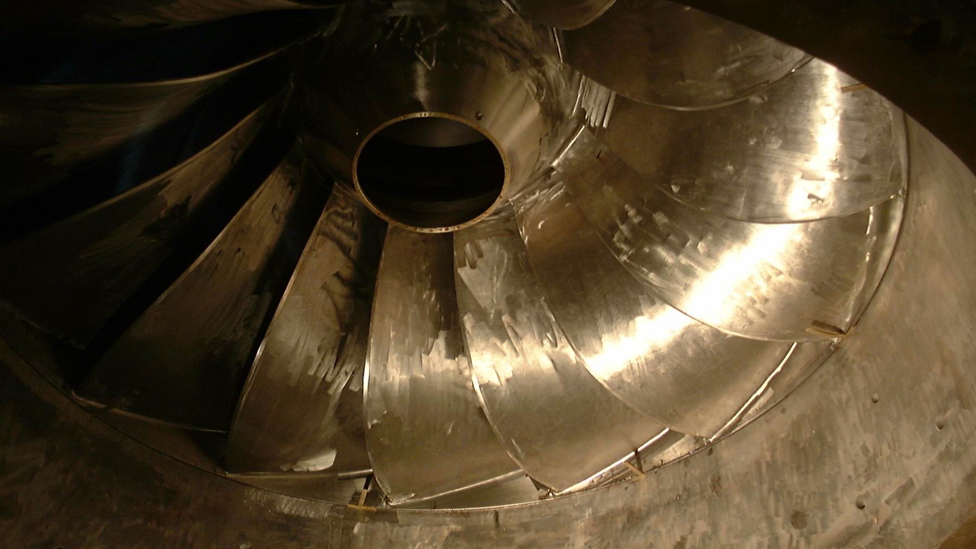 There is a surge shaft at the end of the tunnel to reduce the overpressure in the waterways. The surge shaft is followed by a single penstock that splits into three manifolds leading into three Francis-type turbines.