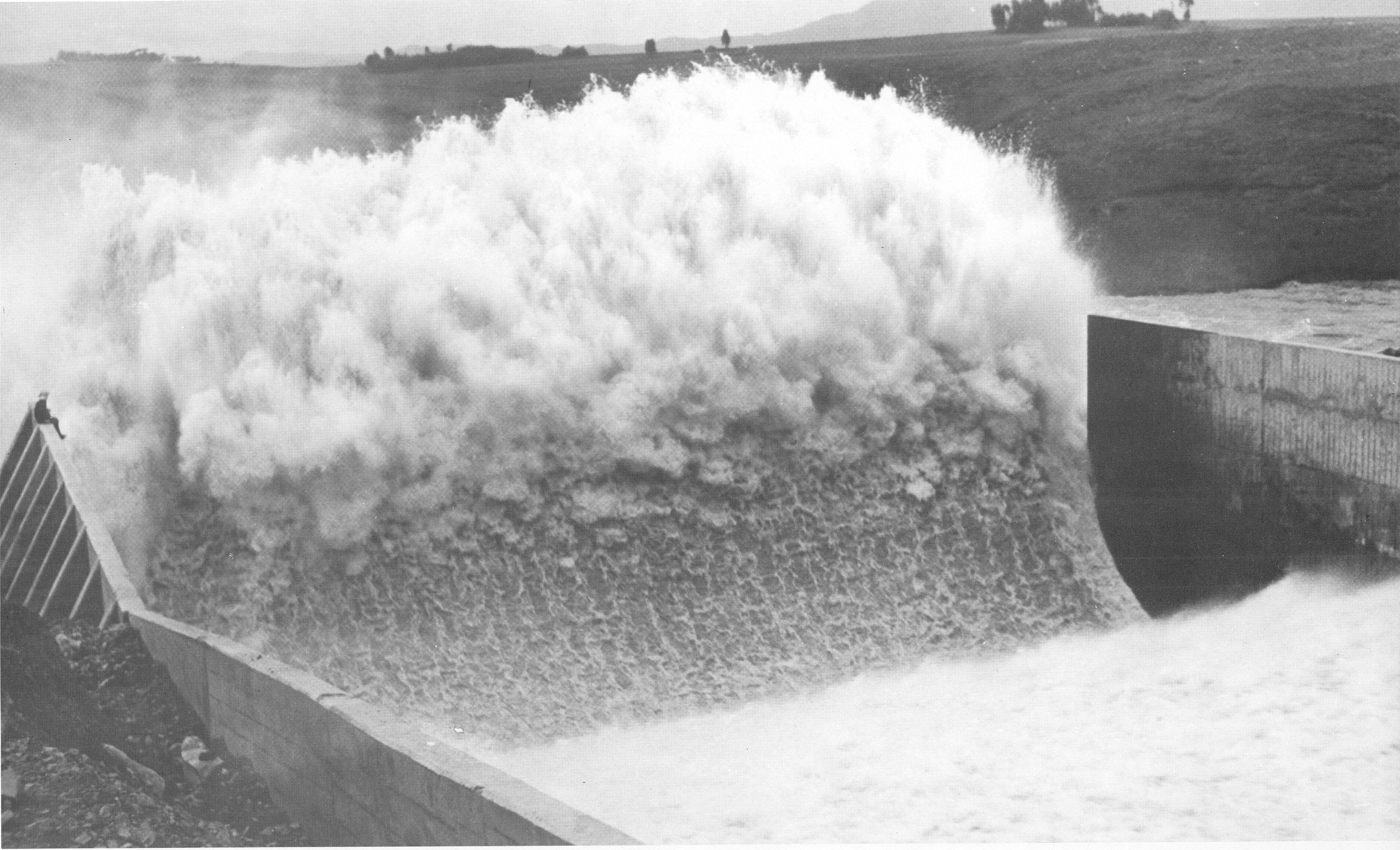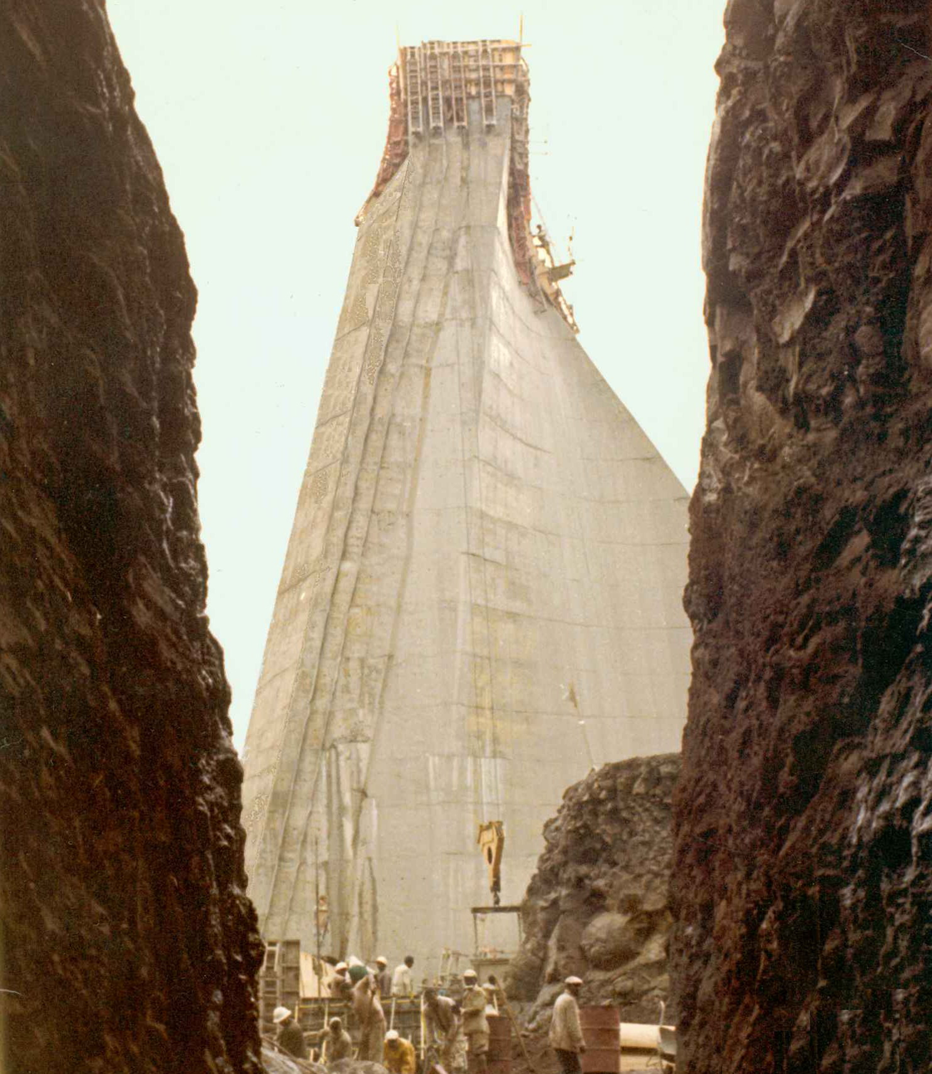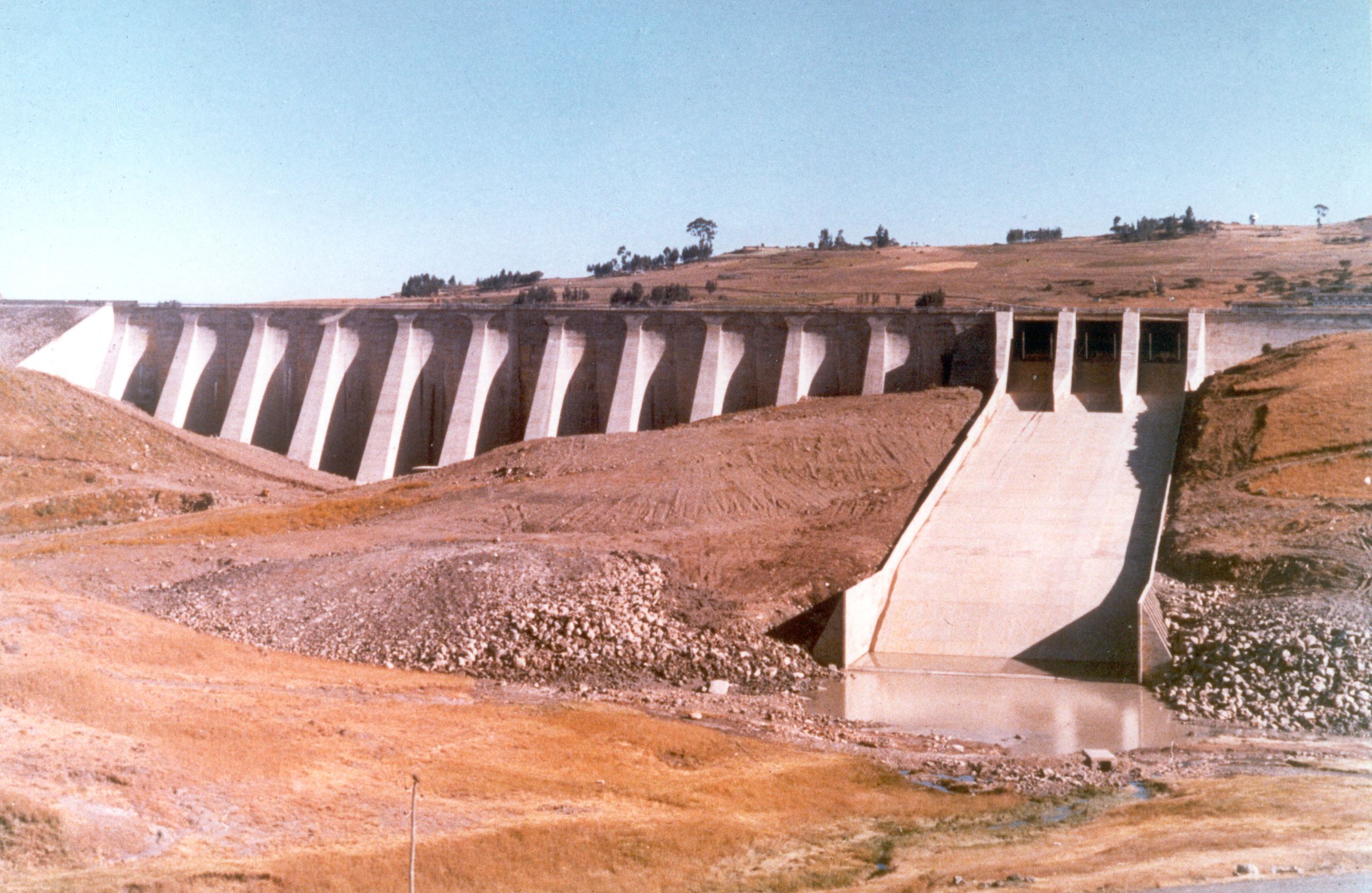 Engineering for storage plant and urban water supply The purpose of the reservoir is to regulate the flows in the Sendafà river, tributary of Legadadi river, and use them for the water supply of Addis Ababa. The dam was built in the 60s to meet the increasing demand for potable water. “Every day in Ethiopia hundreds of people die because they don’t have access to water”. These were the words uttered by Negus Neghesti, the King of Kings, Haile Selassie, to a very young, twenty-seven-year-old, Giorgio Pietrangeli. With such a professional and moral investiture, the Legadadi project could only have been realized in record time. Legadadi represents an important milestone in Studio Pietrangeli’s history. Legadadi dam consists of eight different dam types, designed to better adapt to the different geological conditions of the foundation. The two main dam types, are Hollow Gravity Concrete Dam (main dam) and Bituminous Face Rockfill Dam (saddle dam). This dam, 44 m high, creates a 40 Mm3 reservoir which regulates the river flows. The released water passes through a treatment plant with a capacity of 50’000 m3/day. The spillway consists of three bays controlled by flap gates, discharging into a 163 m long chute, which in order to reduce the erosion in the river bed, end with a flip bucket type energy dissipator. The bottom outlet, located in the dam body, includes twin pipes with a diameter of 900 mm with emergency closure, two guard valves, two regulating valves and two energy dissipating cone valves Howell-Bunger type. The intake consists of a tower with three inlets at different levels, an artificial gallery crossing the secondary dam and a steel pipe to transfer the flows from the intakes to the treatment plant. ETHIOPIA CLIENT YEAR Ethiopia