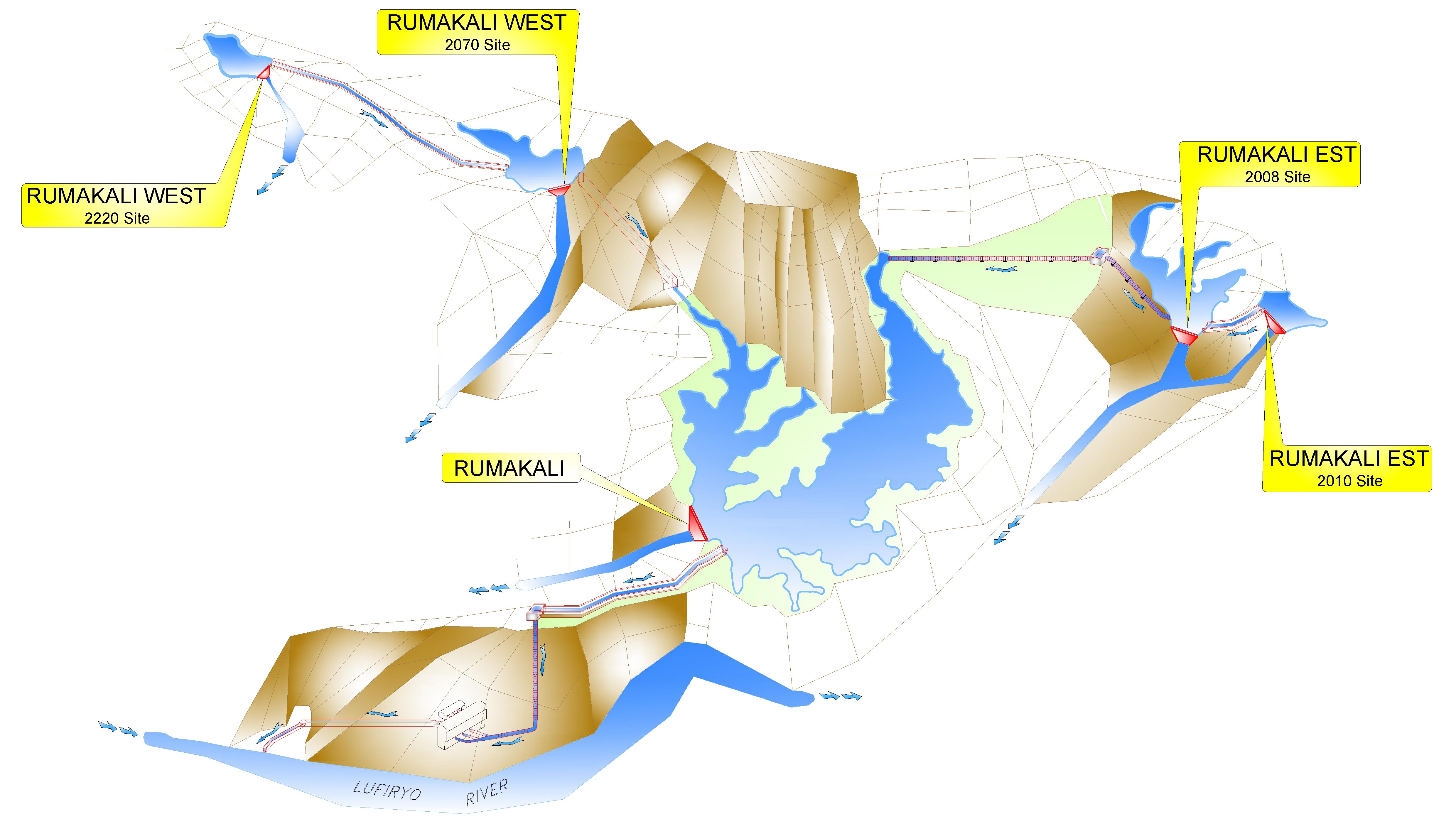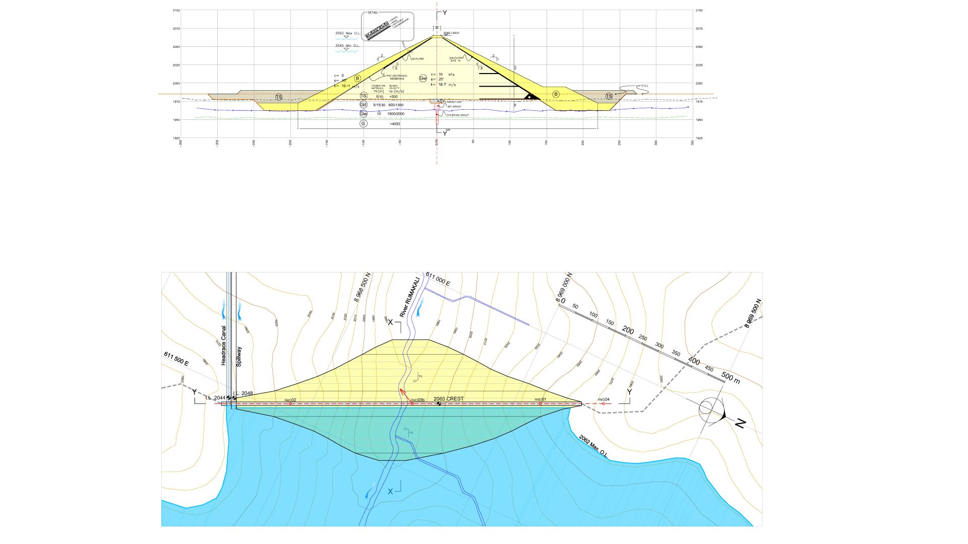 • Rumakali Dam ( Rockfill dam, H = 93 m, L = 800 m )